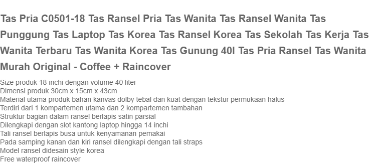 Tas Pria C0501-18 Tas Ransel Pria Tas Wanita Tas Ransel Wanita Tas Punggung Tas Laptop Tas Korea Tas Ransel Korea Tas Sekolah Tas Kerja Tas Wanita Terbaru Tas Wanita Korea Tas Gunung 40l Tas Pria Ransel Tas Wanita Murah Original - Coffee + Raincover