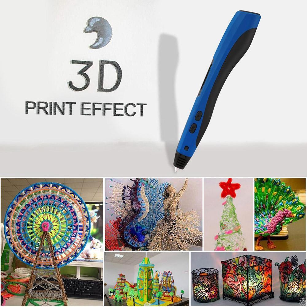 Liangun Pencetaka 3D Pena 2nd Generasi Cerdas 3D Gambar Model untuk Mencoret-coret, art Craft Membuat dan Pendidikan dengan 3 Free 1.75 Mm Filamen ABS (Biru)