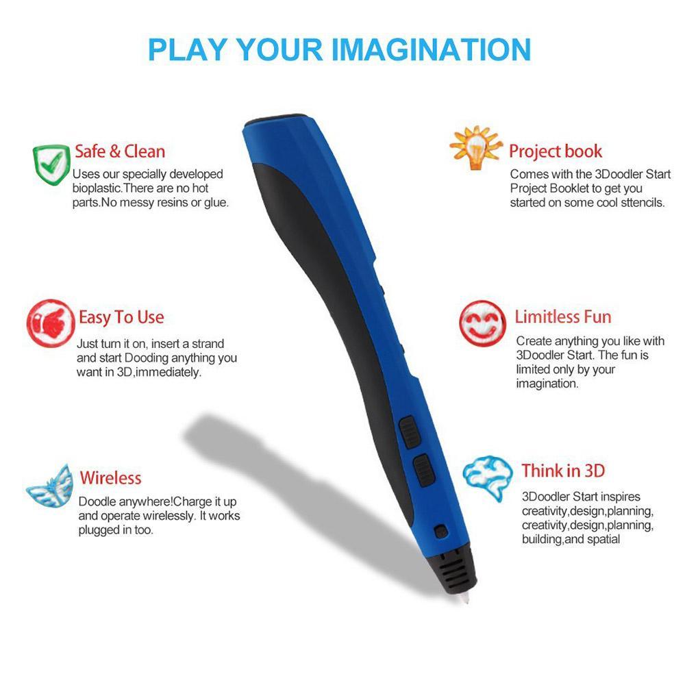 Robxug Pencetaka 3D Pena 2nd Generasi Cerdas 3D Gambar Model untuk Mencoret-coret, art Craft Membuat dan Pendidikan dengan 3 Free 1.75 Mm Filamen ABS (Biru)