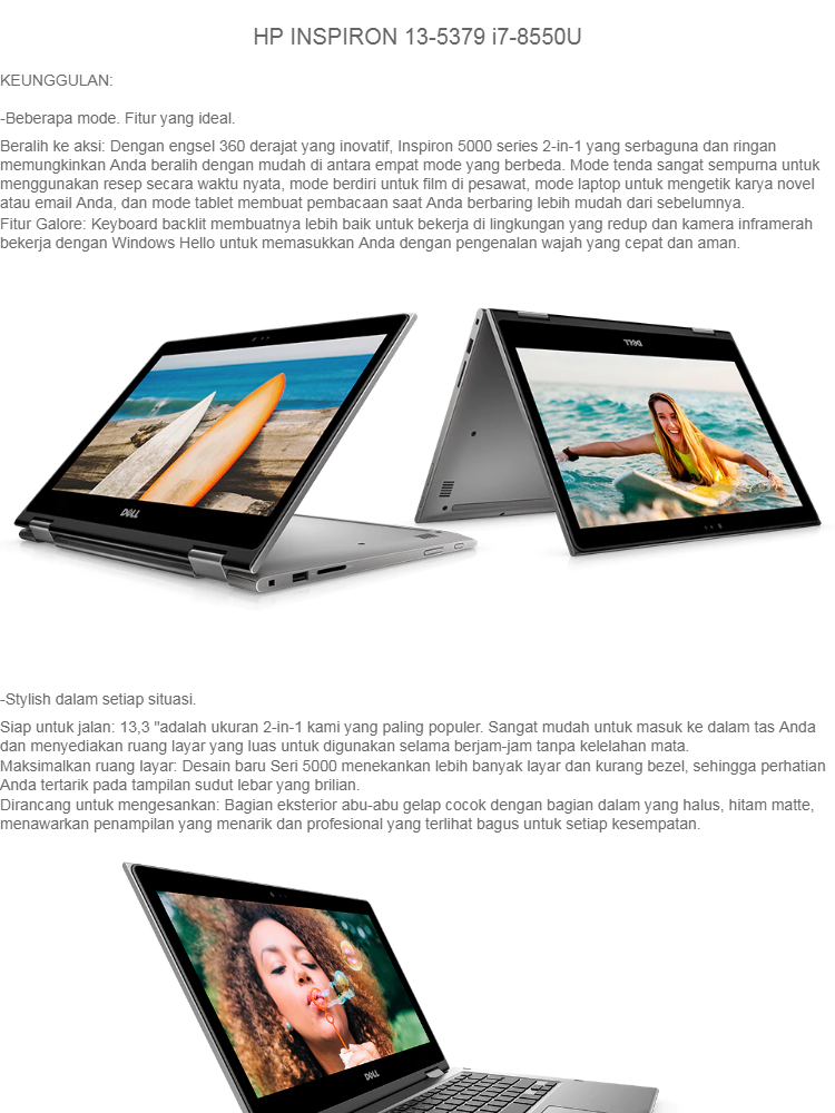 DELL INSPIRON 15 5579 - X360 - CORE I7 8550 - RAM 8GB - HDD 1TB - FHD - Windows10 TOUCH