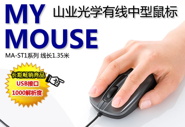 Produk Nama: Industri bukit SANWA MA-ST1DG optik ada kabel Medium usb Mouse panjang garis 1.35 Meter