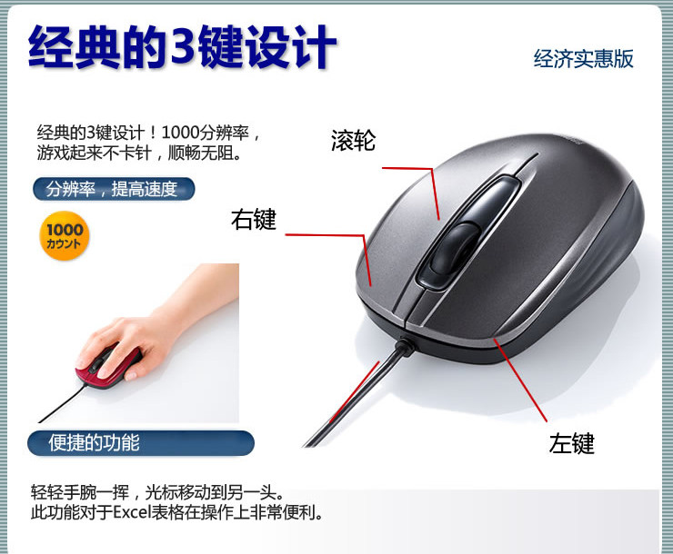 Jepang SANWA fotolistrik Mouse Medium Komputer usb ada kabel Mouse notebook Mouse terjangkau jenis ekonomi