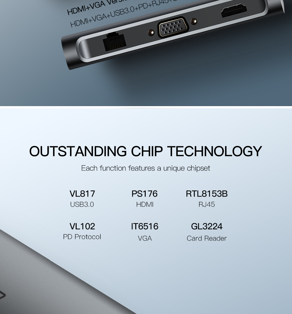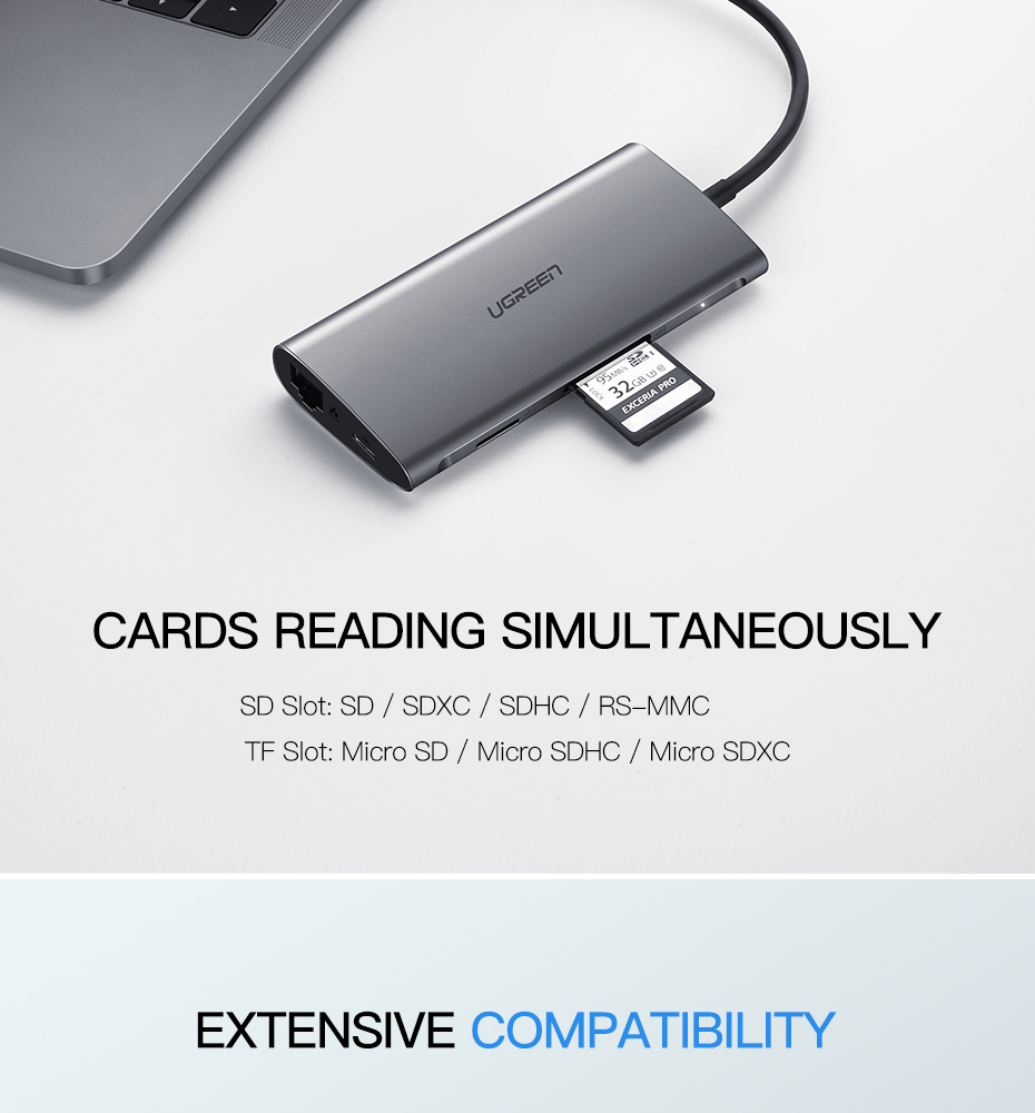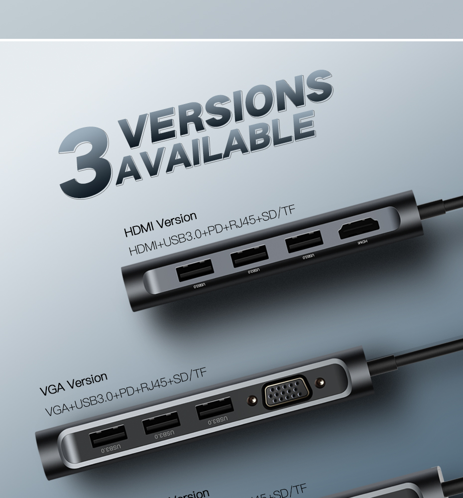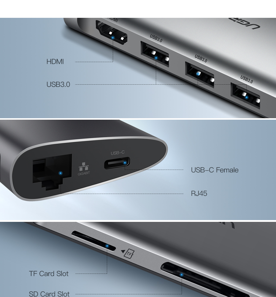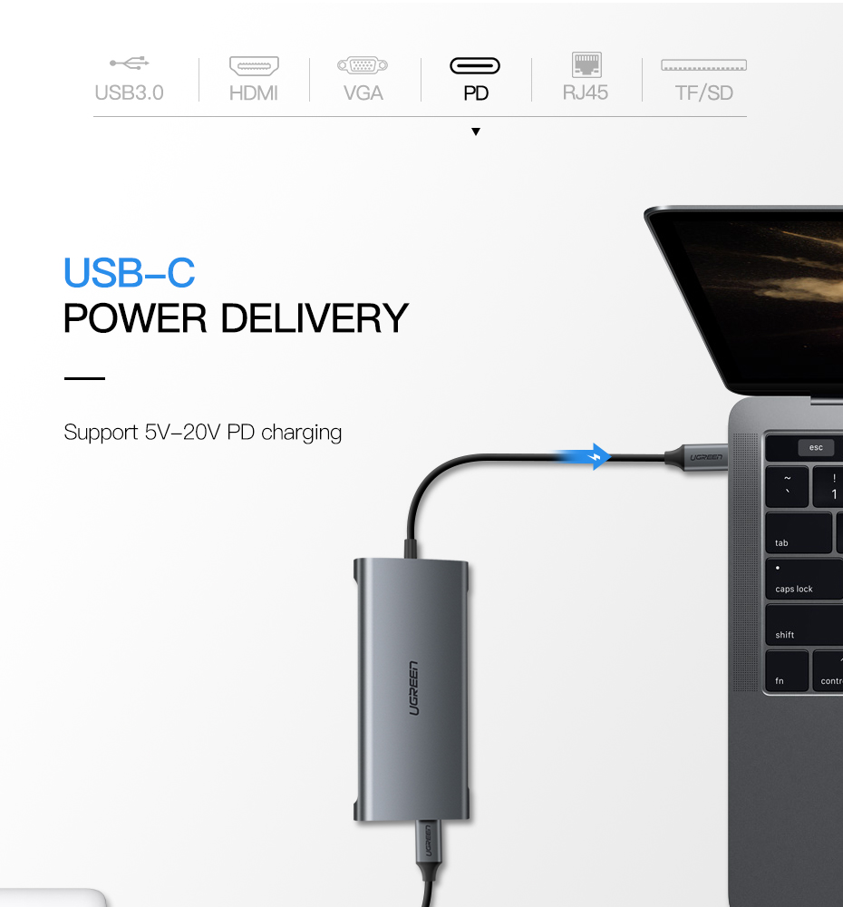 UGREEN Type C Hub 9 in 1 with HDMI VGA, PD Charge, Gigabit Ethernet Port, 3 USB 3.0 Ports, SD TF Card Reader USB C 3.1 Adapter Dock Station for Macbook Pro 2017 2016, Google chromebook, Dell XPS 13 15, Lenovo Yoga 900, HP Spectre notebook, Dark Grey