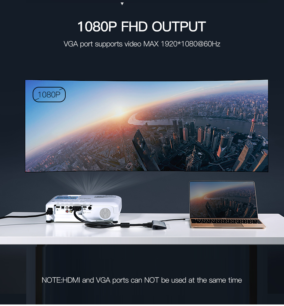 USB 3.1 Tipe-C Male TO VGA + USB 3.0 + Tipe-C HUB Converter Adapter