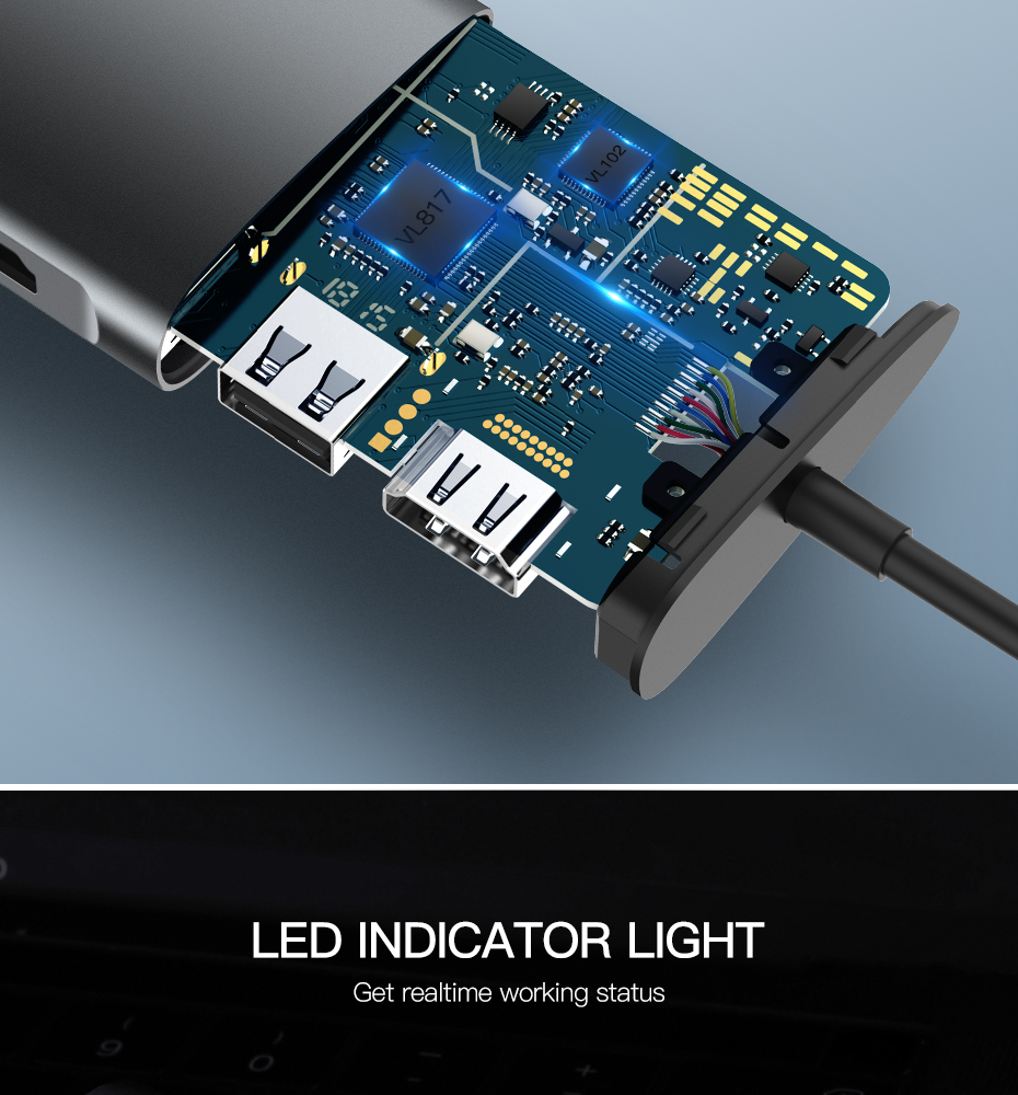 Niceeshop Thunderbolt Usb C Hub, aluminium Thunderbolt 3 5K @ 60Hz Tipe-C HUB Dongle Adaptor untuk 2016/2017 MacBook Pro 13" 15 ", 2X USB 3.0 Tipe C Power Delivery, MICRO SD/Pembaca Kartu SD
