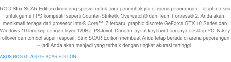 Harga Laptop Asus Rog Gl503vd Scar Edition - Jika anda sedang membutuhkan info berkenaan dengan Harga Laptop Asus Rog Gl503vd Scar Edition, maka anda berada di artikel yang tepat. Pilihan harga untuk Harga Laptop Asus Rog Gl503vd Scar Edition dibawah bisa jadi merupakan apa yang sedang anda butuhkan saat ini.