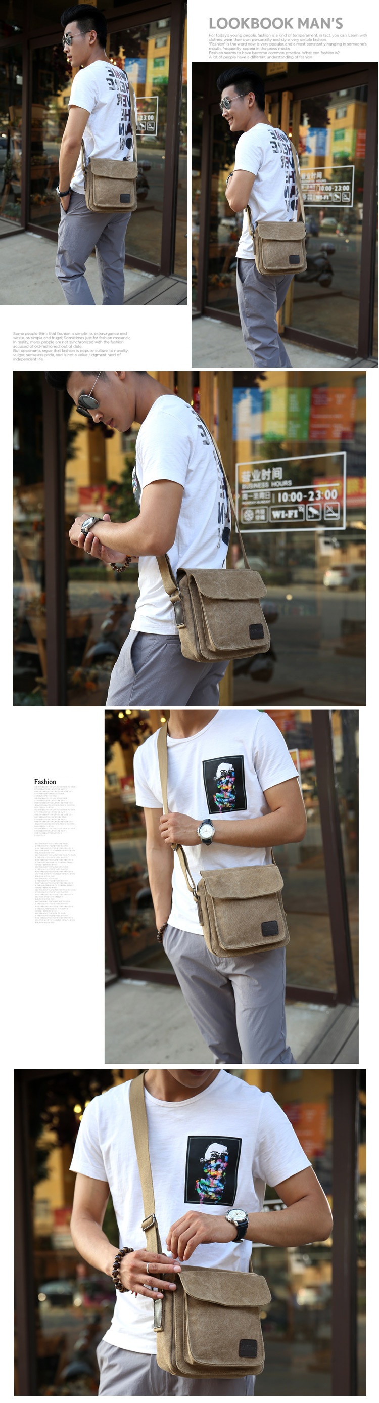 Tas Pria Import Batam Model Terbaru Men's Messenger Shoulder Canvas Bag Travel Crossbody Bag - Khaki