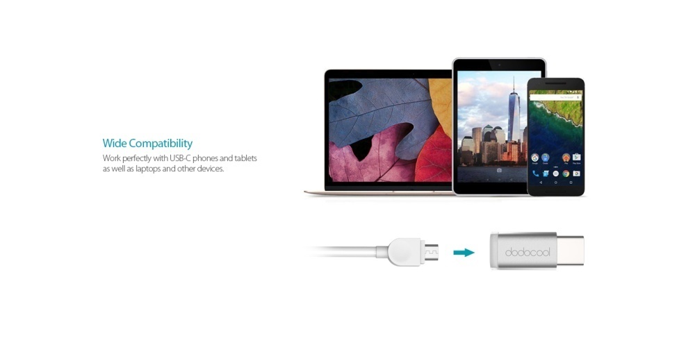 Overviewdodocool USB-C to Micro-USB Adapter allows you to connect your USB-C smartphone or tablet to any USB charger or computer with a standard Micro-USB cable. More convenient for charging, sync or data transfer.