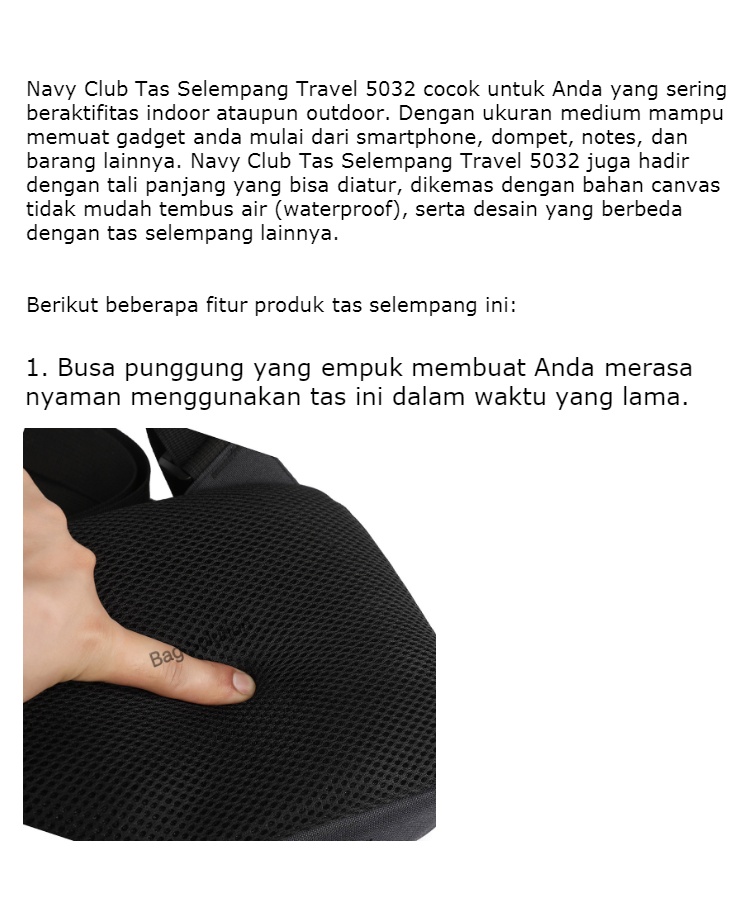 Navy Club Tas Selempang Travel Cross Body - Tas Punggung Tas Dada Tahan Air - Sling Bag Tas Pria Tas Wanita Tas Slempang Pria EJCB