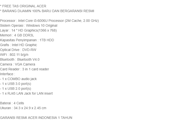 ![Laptop Lenovo Ideapad 320-14ISK [Core I3-6006U/RAM 4GB/HDD 1TB/DVDRW/Integrated Graphics/14 Inci/DOS]](https://id-live-01.slatic.net/original/2c72bbbfd6b756936bbc389558e034b6.jpg)