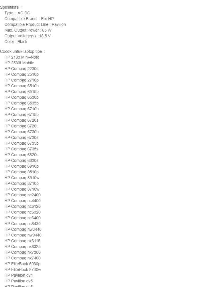 HP Original Adaptor Charger Laptop Notebook Compaq presario CQ42 CQ43 CQ45 CQ50 CQ60 CQ70 Berikut Kabel Power 18.5v 3.5A Jarum (7.4*5.0)