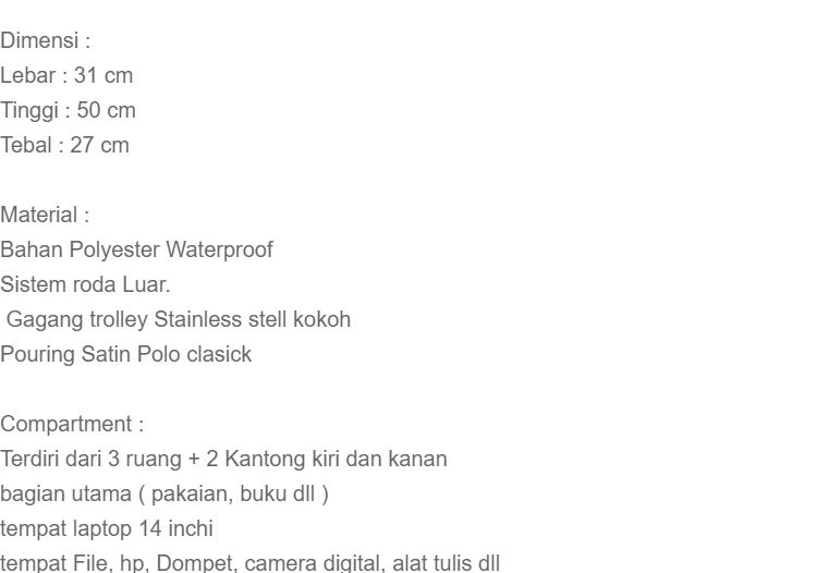 Barang ini di jual oleh Bag Solution melalui Lazada dan akan dikirim dari DKI Jakarta.