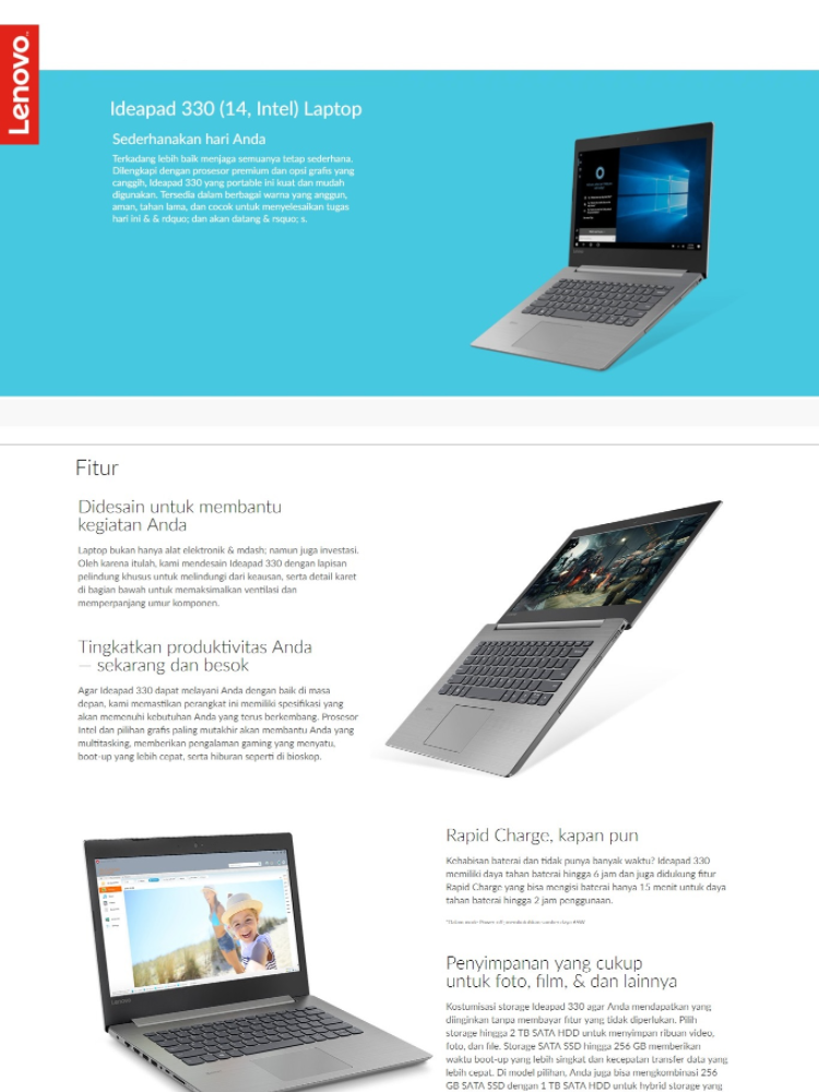 Lenovo IdeaPad IP 330 -14AST AMD A4 -9125 / WINDOWS 10 / AMD Radeon R3 / 4GB DDR4 / 500GB / 14 Inch / IP330 / 1 Tahun Garansi Resmi