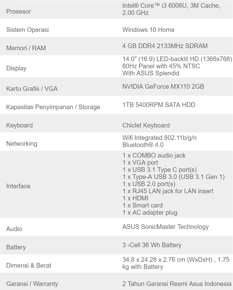 Asus X441UB-GA042T - Intel Core i3 6th Gen (4GB/1TB/Nvidia MX110 2GB/Windows 10/14"/Black) Student Laptop