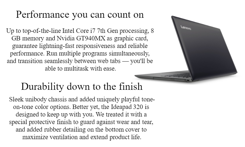 Lenovo Ideapad 320 - Intel Core i7 7th Gen (8GB/1TB/Nvidia GT940MX 2GB/Windows 10/14"/Platinum Grey) Office Laptop