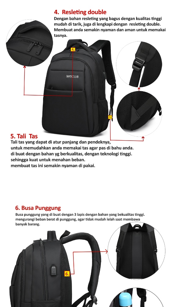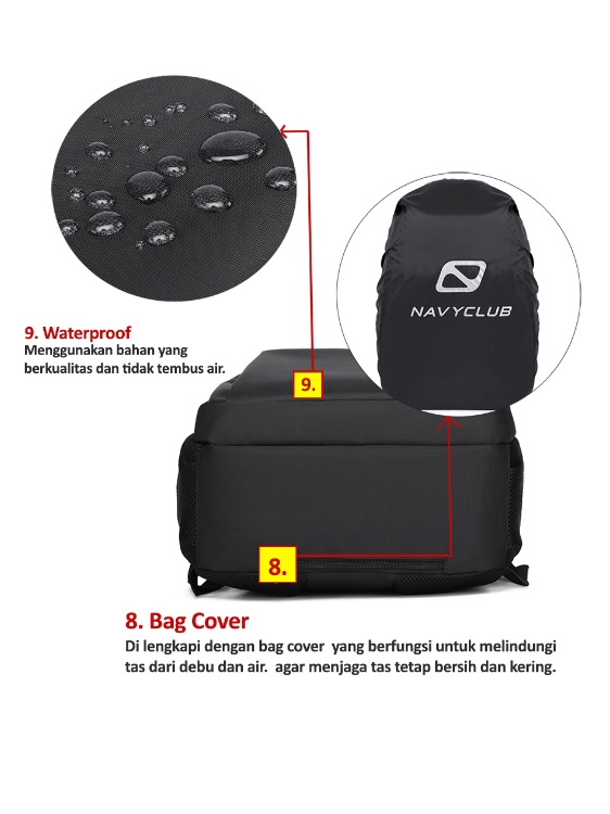 Navy Club Tas Ransel Laptop - Tas Pria Tas Wanita Tas Punggung - Backpack built in USB Charger Up to 15 inch Anti Air EIFB BPU - Bonus Cover Tas